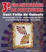 El 11 de septiembre tendrá lugar en Sant Feliu de Guíxols (Girona) la 3a Feria Mediterránea de Patchwork. Se podrán ver exposiciones y adquirir productos en la feria situada en la Rambla Vidal de la localidad. Es una magnífica ocasión y un lugar perfecto, en el corazón de la Costa Brava, para reencontrarnos con el mundo del patchwork después del verano. ¡Os esperamos!